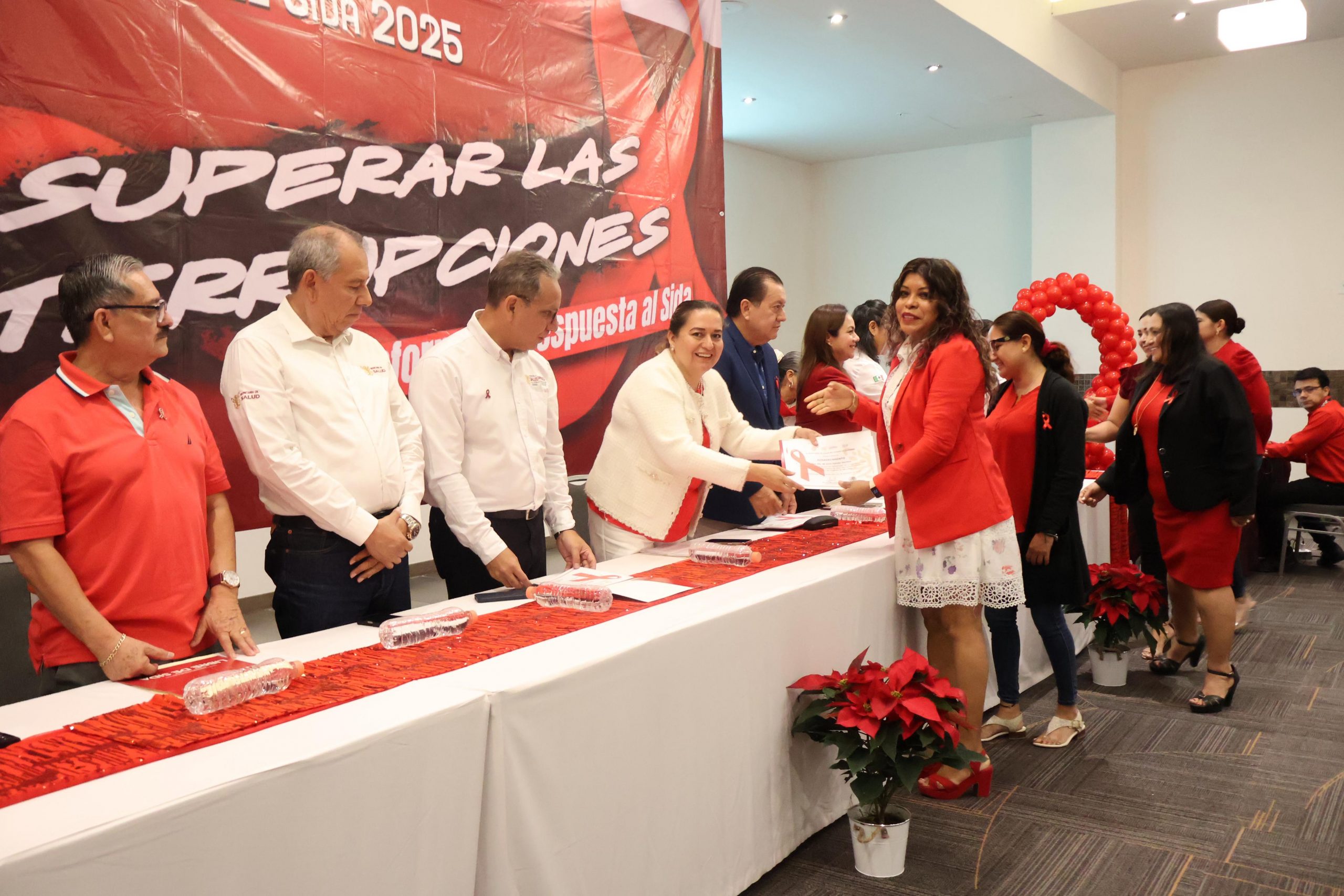 Chilpancingo, Gro., a 01 de diciembre de 2025.- En el marco del Día Mundial de la Lucha contra el SIDA, el gobierno de Guerrero, a través de la Secretaría de Salud estatal, continúa realizando acciones de primer nivel que fortalezcan el sistema de salud en favor de pacientes portadores del VIH, así como en medidas preventivas y servicios de tratamientos basados en la promoción en las ocho regiones de la entidad, esto como una oportunidad de aumentar la conciencia pública sobre este virus como un problema de salud pública mundial, por ello, la titular de la dependencia Alondra García Carbajal, en representación de la gobernadora Evelyn Salgado Pineda, encabezó el evento conmemorativo bajo el lema “Superar las disrupciones, transformar la respuesta al Sida”, destacando el compromiso estatal de fortalecer una atención centrada en la dignidad y los derechos de las personas.