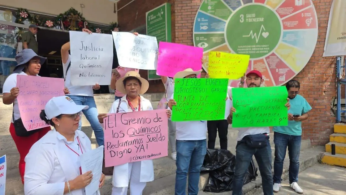 En la víspera del día Nacional del Químico, profesionistas de esta área del conocimiento se manifestaron en las oficinas centrales de la Secretaría de Salud para demandar a la institución reconocerlos como profesionistas y no como técnicos y de esta manera puedan tener el salario y prestaciones que les corresponde.