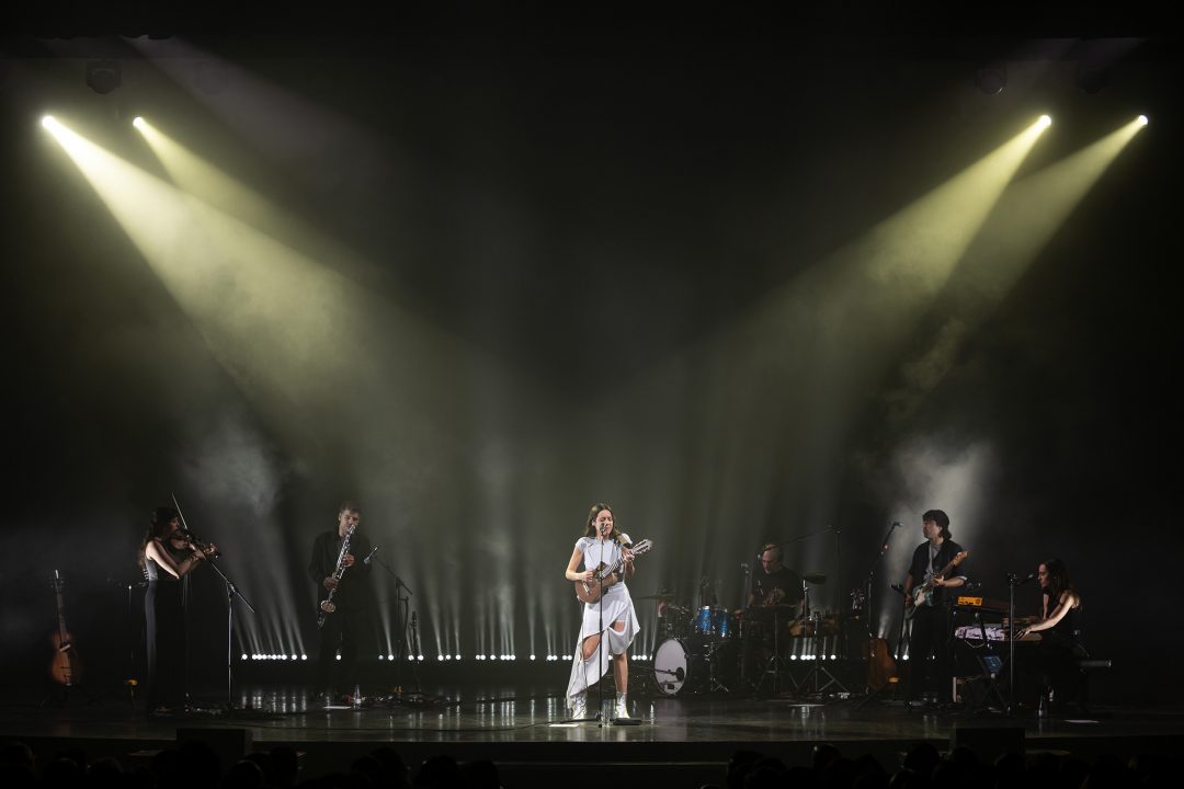 Málaga.- El final de Terral llegó con la presentación de la cantante Valeria Castro, originaria de Los Llanos de Aridane, La Palma. Con un teatro completamente vendido y con gran entusiasmo de sus seguidores. Valeria desde que salió al escenario fue recibida con aplausos y ella nunca perdió su sonrisa. Comenzó la noche con el tema “La Soledad”, estuvo acompañada de Meritxell Neddermann teclado y coros, María de la Flor guitarra, ronroco y coros, Carles Campi Campón bajo, Borja Barrueta percusión y Joaquín Sánchez vientos.