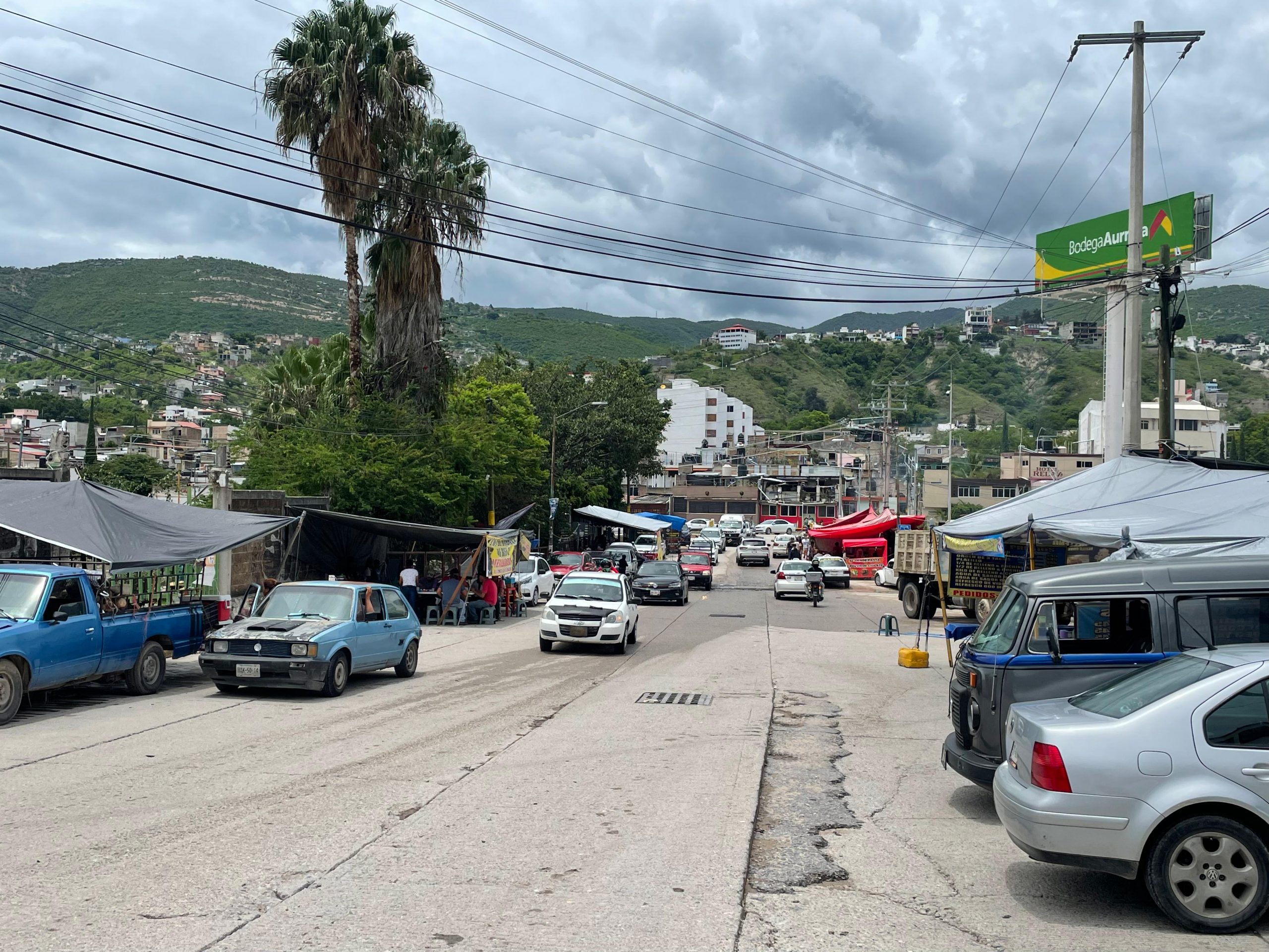 El pasado jueves una tromba que se abatió en la zona norte de la capital ocasionó el desbordamiento de la barranca “Las Tortolitas”, que corrió por la calle que se encuentre entre la Tienda Aurrera y el deportivo Hermanos Galeana donde se registraron al menos una decena de comercios semifijos dañados.