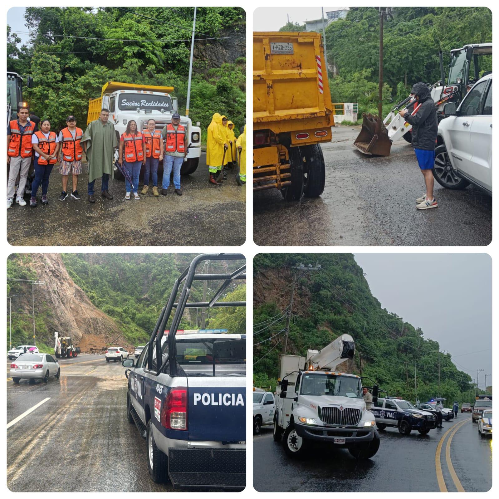 Acapulco, Gro., 30 de junio de 2025.- Con el objeto de liberar la vialidad ante el deslave de piedras, derivado de las últimas lluvias en la ciudad, esto en la carretera federal Acapulco – Zihuatanejo, a la altura de la colonia Venustiano Carranza, el Gobierno Municipal que preside Abelina López Rodríguez realiza maniobras en conjunto con instancias federales.