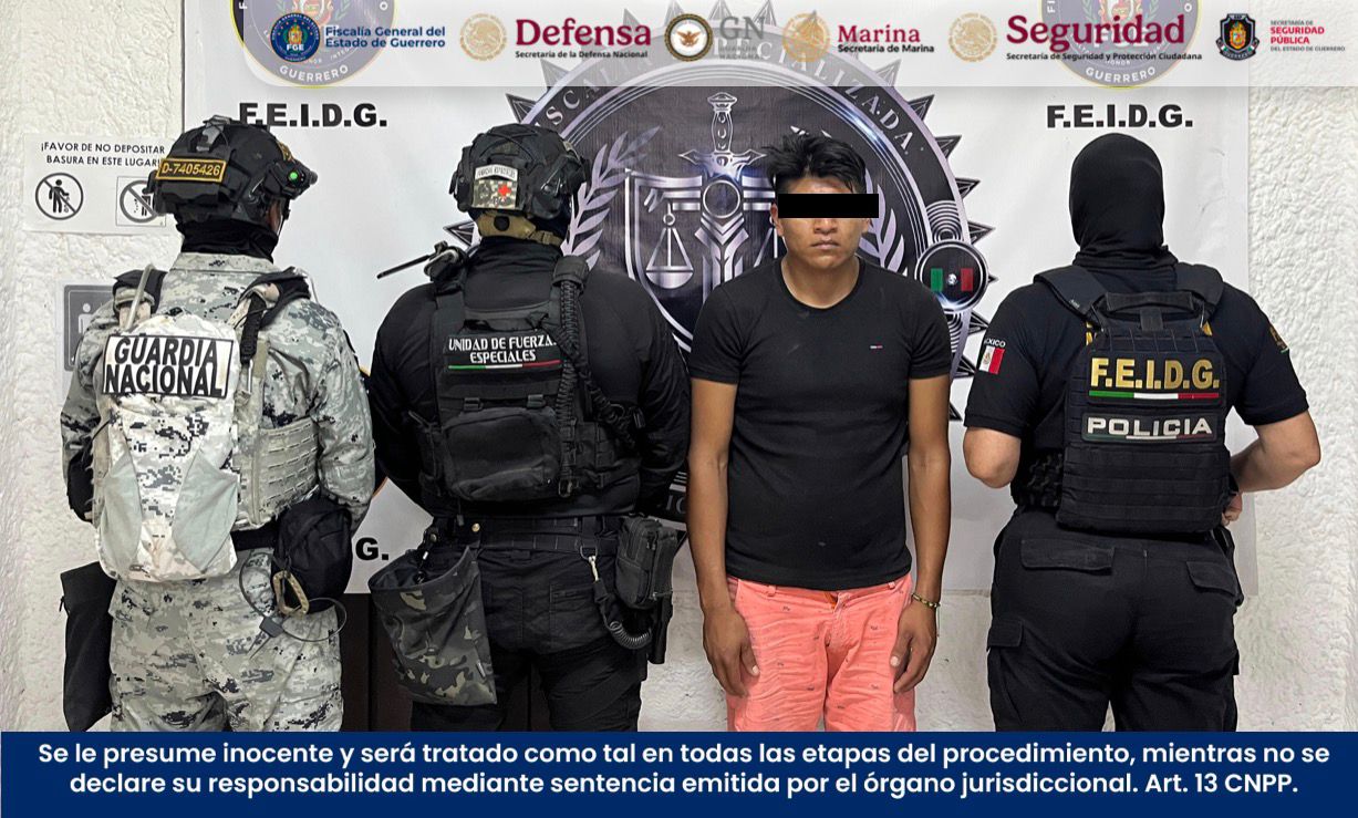 Chilpancingo, Gro., a 2 de diciembre de 2025. – La Fiscalía General del Estado de Guerrero informa que, como resultado de acciones coordinadas con la Secretaría de la Defensa Nacional (DEFENSA), Guardia Nacional (GN), Secretaría de Seguridad y Protección Ciudadana (SSYPC) y Policía Estatal, se logró la detención en flagrancia de un masculino identificado como Julio “N”, alias “El Maka”, en el municipio de Chilpancingo de los Bravo, Guerrero.