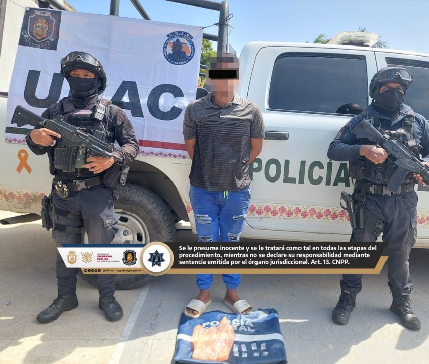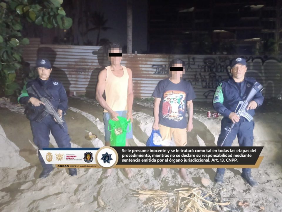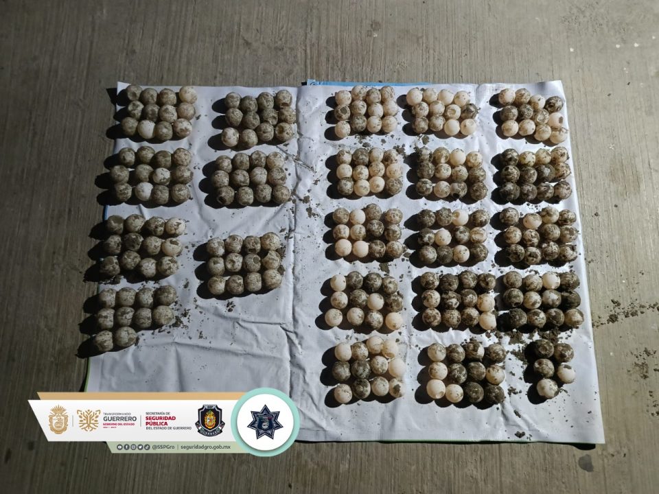 Acapulco, Gro., 18 de julio de 2025.– Como resultado de operativos de reacción inmediata y prevención del delito, personal de la Policía Estatal detuvieron a cuatro personas, aseguraron presunta droga, recuperaron y resguardaron huevos de tortuga de la especie marina en el municipio de Acapulco.