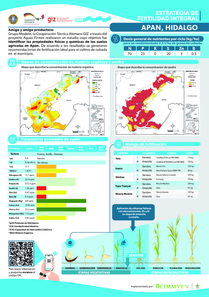 Un ejemplo de este esfuerzo es el municipio de Apan, Hidalgo, donde se analizaron las propiedades físicas y químicas del suelo y se elaboraron recomendaciones de fertilización específicas para el cultivo de cebada.