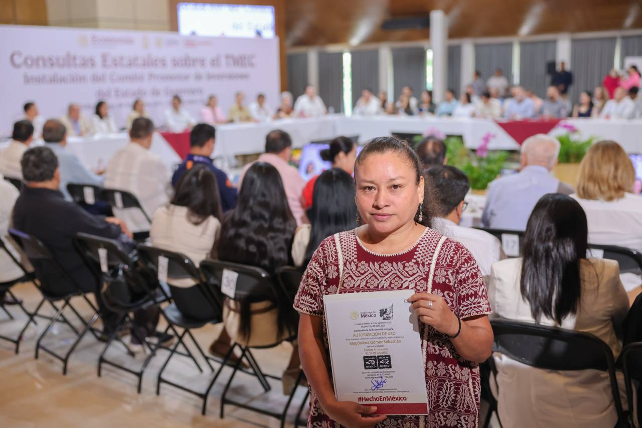 En este marco, la gobernadora Evelyn Salgado acompañó la entrega de 11 autorizaciones de las marcas “Hecho en México” y “Hecho en Guerrero” a empresas locales, como un reconocimiento a su calidad y compromiso con el desarrollo regional.