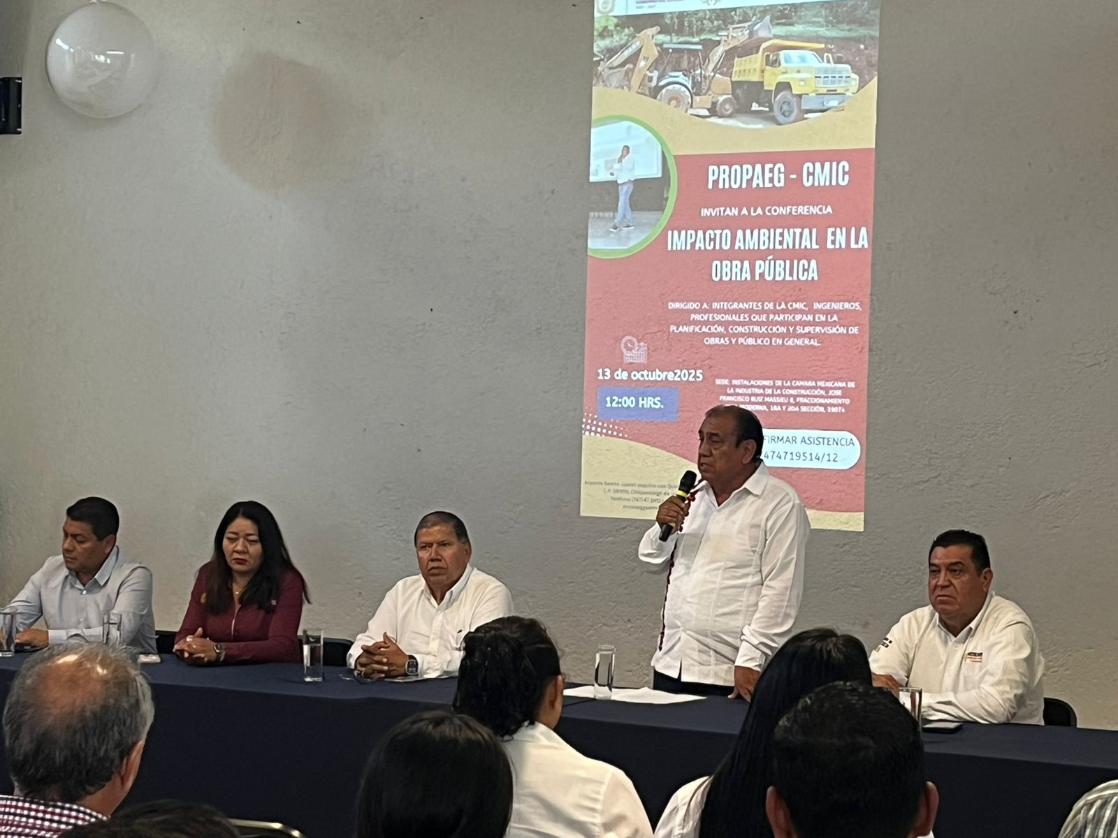 Chilpancingo, Gro., 13 de octubre de 2025.– Con el objetivo de otorgar herramientas que permitan evitar el incumplimiento de ordenamientos que pudieran derivar en sanciones administrativas ambientales, la Procuraduría de Protección Ambiental del Estado de Guerrero (PROPAEG), en coordinación con la Cámara Mexicana de la Industria de la Construcción (CMIC) Delegación Guerrero, impartieron la conferencia “Impacto Ambiental en la Obra Pública”, dirigida al sector de la construcción.