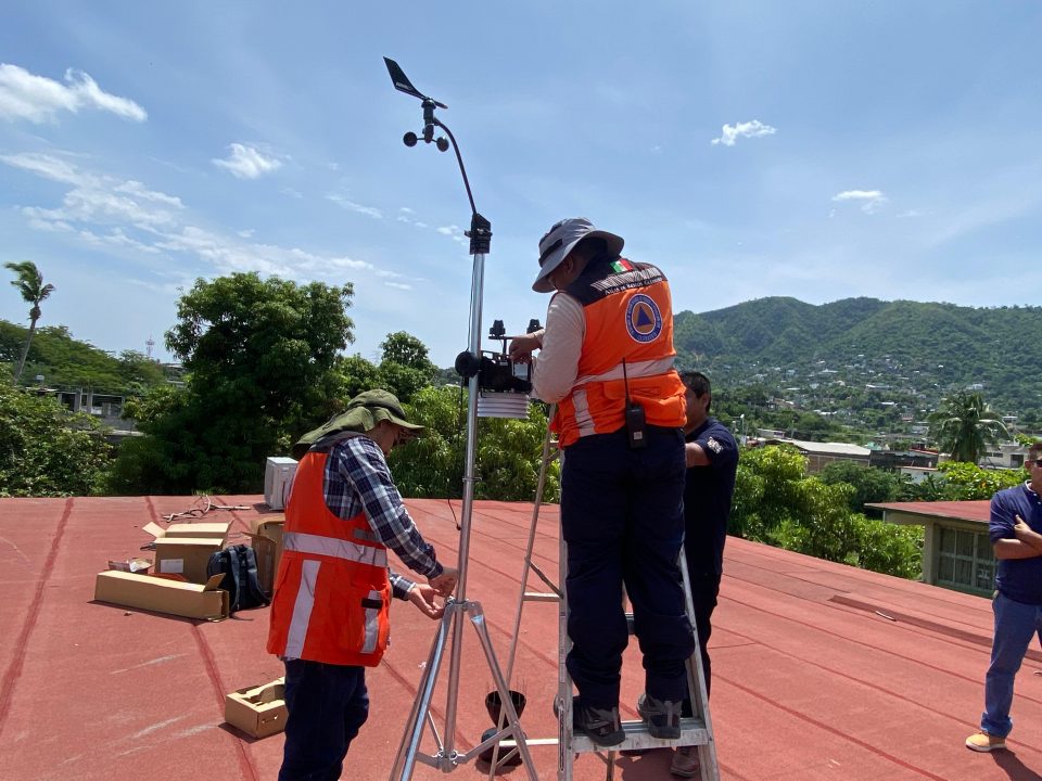 Este jueves se realizaron los trabajos correspondientes para la instalación de equipo especializado en el municipio de Tecpan de Galeana, que servirá para monitorear en tiempo real la velocidad del viento, niveles de temperatura y precipitación pluvial.