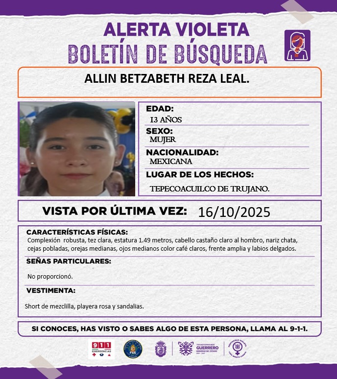 Se solicita su colaboración para la difusión y localización de la C. ALLIN BETZABETH REZA LEAL.