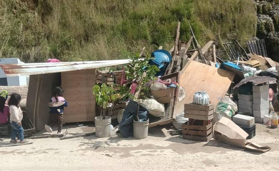 A las 9:30 de la mañana terminaron de derruir las cuatro casas y sus pertenencias quedaron en la calle. Después una máquina retroexcavadora borró el rastro de que hubo casas emparejando el terreno. Las niñas y niños desconsolados con sus lágrimas en los rostros miraban las triquiñuelas y la infamia de las autoridades comunitarias. A pesar de que sólo había quedado el polvo de los adobes permanecían contemplando con añoranza su hogar.