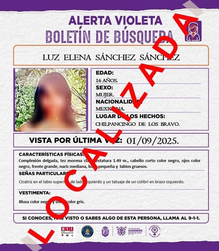 La fémina fue trasladada al área de Atención a Víctimas de la SSyPCM y posteriormente entregada con sus familiares, así mismo, en seguimiento a protocolos policiales la alerta violeta fue desactivada.