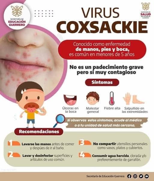 Chilpancingo, Gro. — La Secretaría de Salud, llamó a las y los guerrerenses a extremar medidas de prevención a fin de evitar casos del virus Coxsackie.