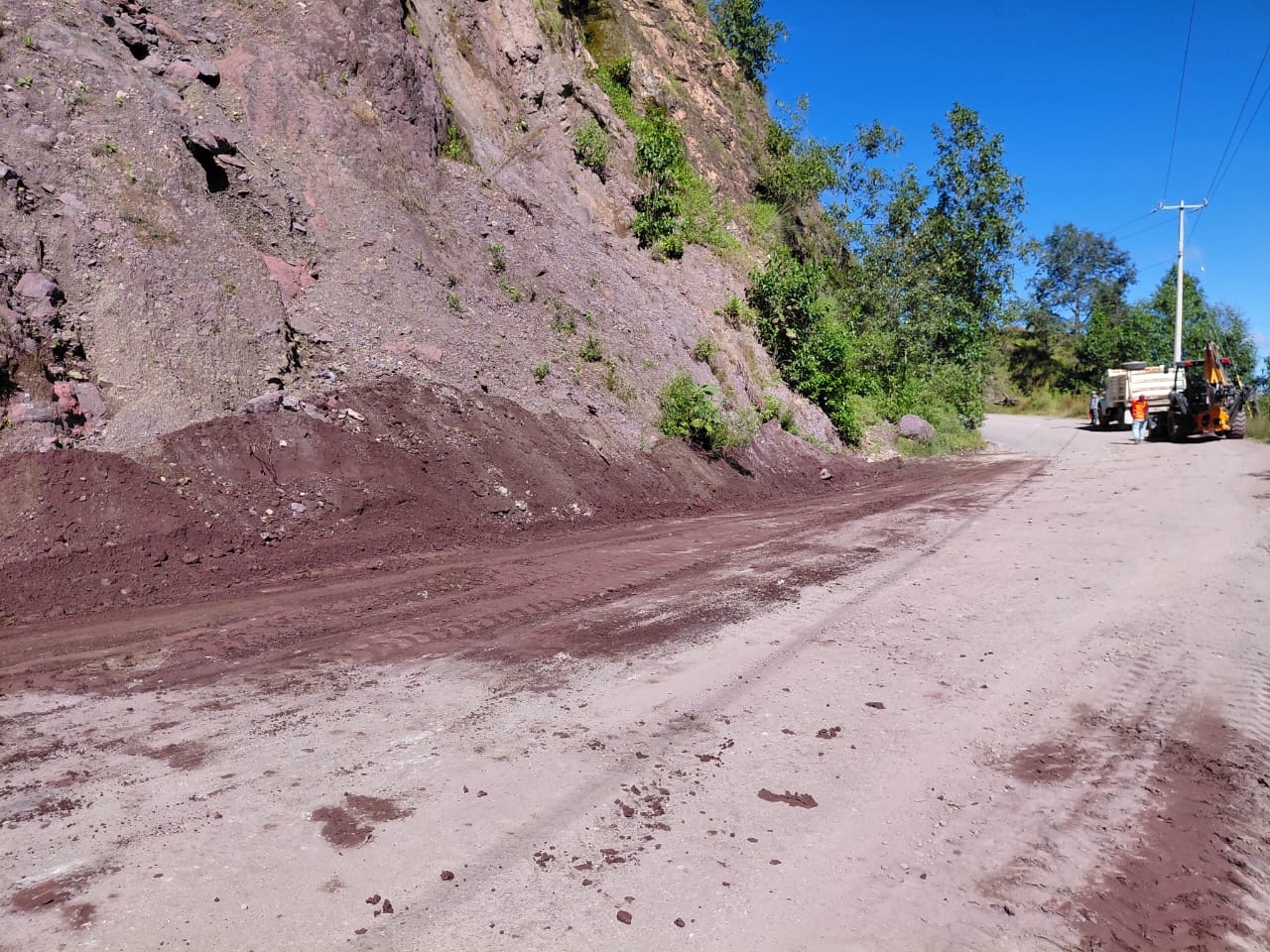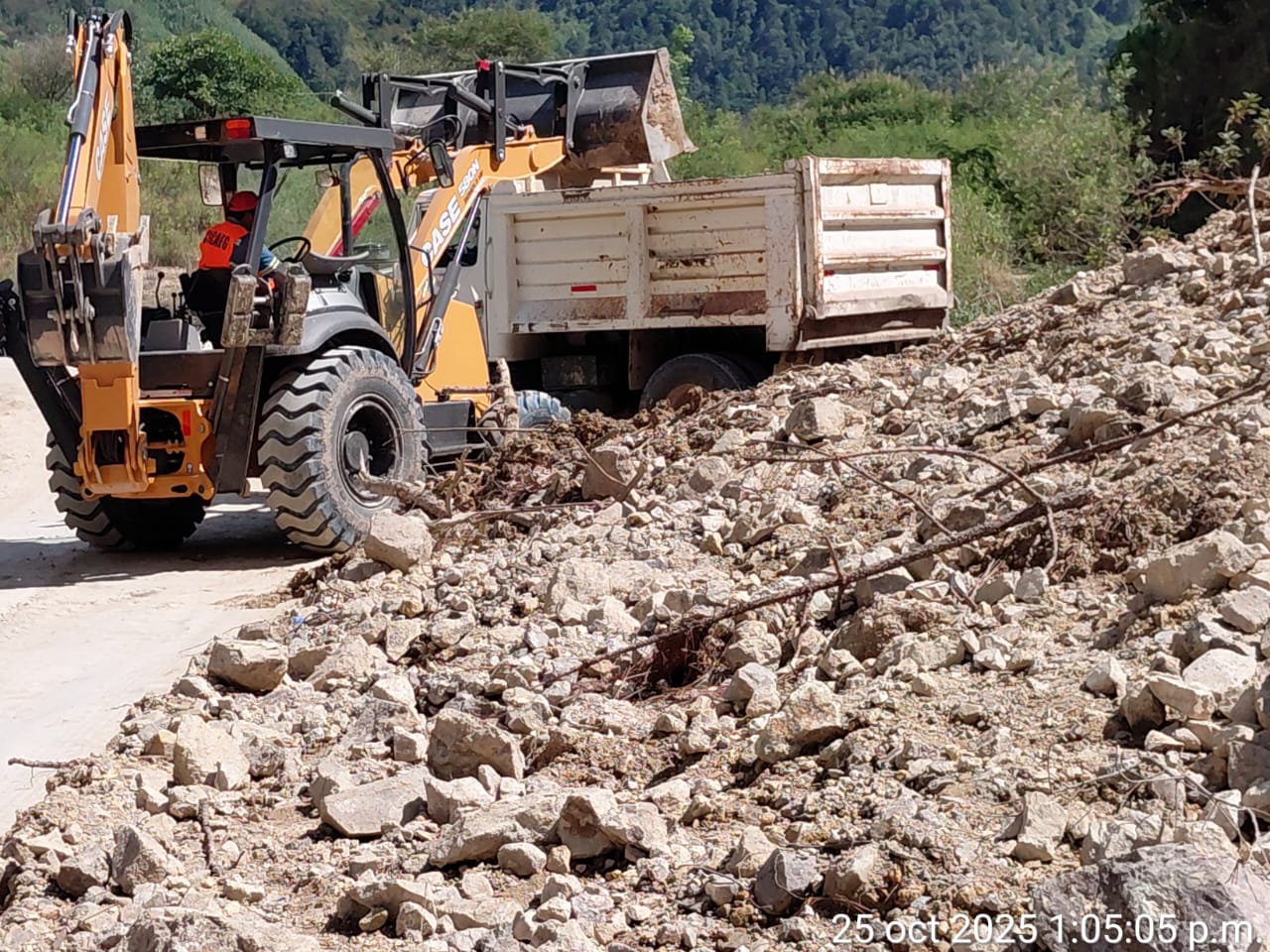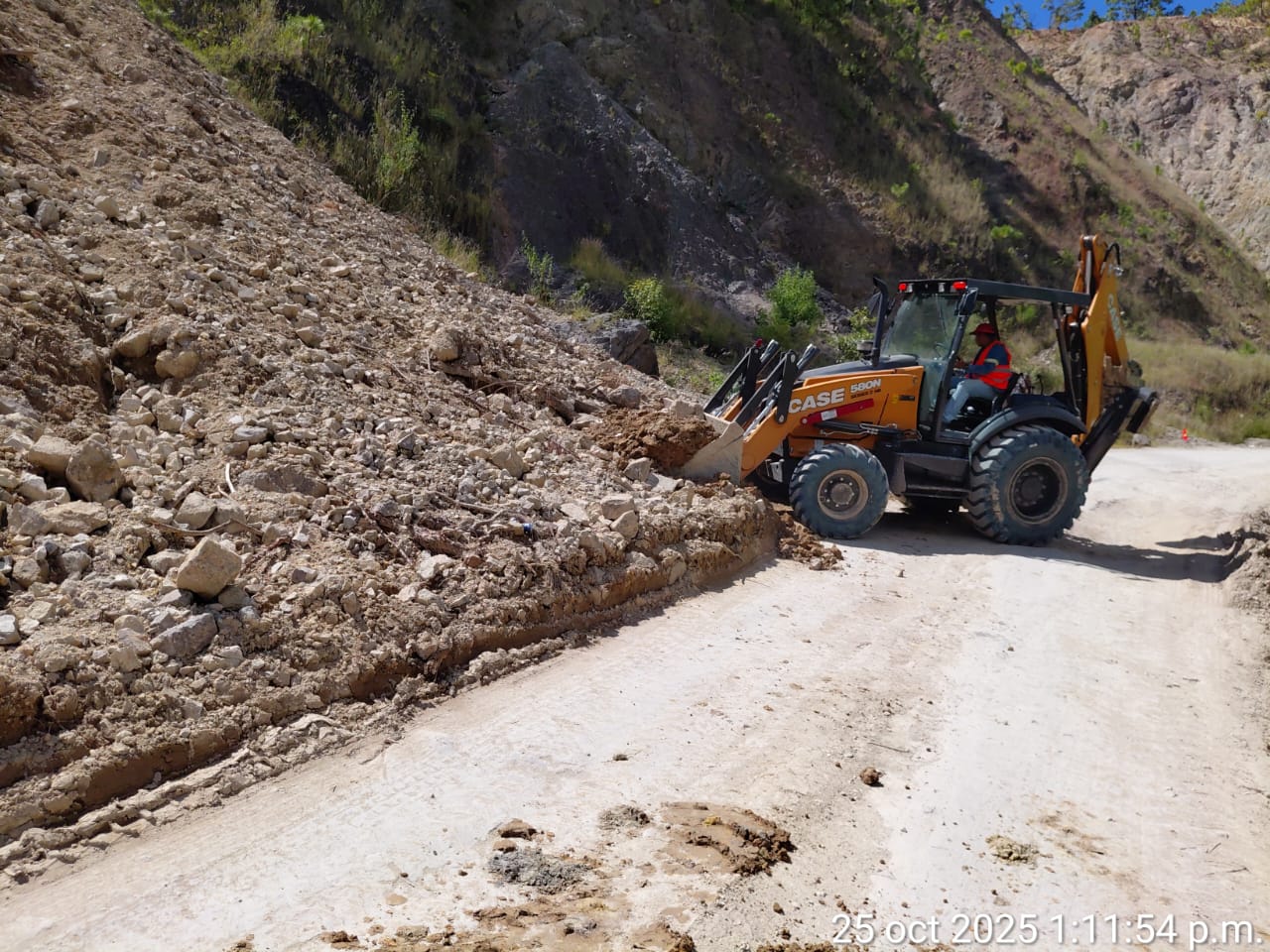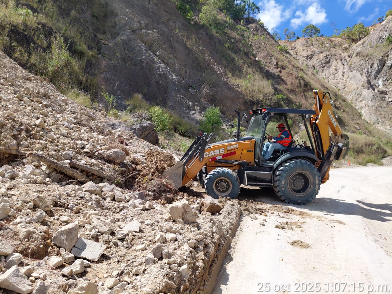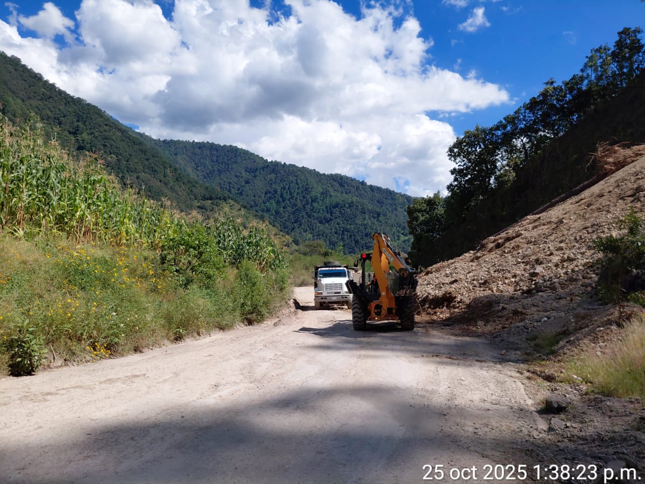 Destacó que se han logrado avances significativos en la extracción de material producto de los derrumbes, gracias a la operación constante de una retroexcavadora y un camión de volteo, así como al apoyo del personal encargado de dirigir el flujo vehicular y garantizar la seguridad de las y los conductores.