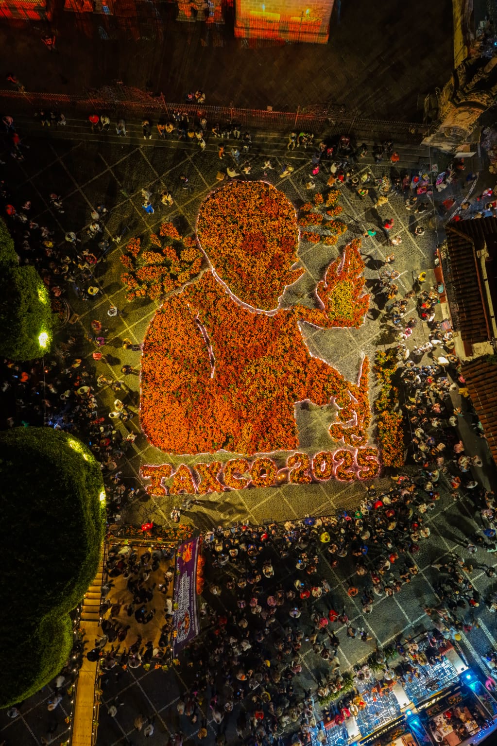 Iluminada con luces alusivas al Día de los Fieles Difuntos. La Plaza Borda ofrece un espectáculo visual que combina el esplendor de la plata con el color del cempasúchil. El “Catrín Platero” no solo honra a quienes dan vida al arte orfebre de Taxco, sino que también se consolida como un nuevo ícono turístico y cultural que atraerá a miles de visitantes en esta temporada de Día de Muertos.