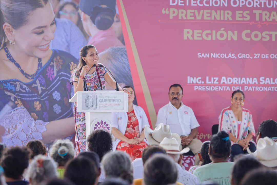 Arranca la Brigada de Detección Oportuna de Cáncer en San Nicolás, en la región Costa Chica*El DIF Guerrero y el IECAN, acercan servicios gratuitos de salud preventiva a municipios de la regiónSan Nicolás, Gro., 27 de octubre de 2025.- Con el objetivo de fortalecer la salud preventiva y garantizar el acceso a servicios médicos gratuitos para todas las familias guerrerenses, el gobierno del estado, que encabeza la gobernadora Evelyn Salgado Pineda, a través del Sistema DIF Guerrero en coordinación con el Instituto Estatal de Cancerología (IECAN), puso en marcha la Brigada de Detección Oportuna de Cáncer “Prevenir es Transformar” en el municipio de San Nicolás, en la región Costa Chica, donde se atendió a la población de la localidad, así como de comunidades aledañas.Durante el arranque de la jornada médica, la presidenta del Sistema DIF Guerrero, Liz Salgado Pineda, destacó que esta brigada representa un esfuerzo del gobierno estatal para promover la cultura de la prevención y la detección temprana de enfermedades, acercando los servicios de salud en territorio, mismos que se ofertan de manera gratuita, esto gracias a las gestiones que realiza la mandataria estatal ante la federación para bajar más recursos que replican en apoyo a la población.Liz Salgado explicó que a través de estas jornadas se realizan estudios de Papanicolaou, mastografías y ultrasonidos mamarios, pélvicos y abdominales, con el propósito de identificar oportunamente padecimientos y ofrecer atención médica integral.Además subrayó que estas acciones responden a la política social y de salud impulsada por la gobernadora Evelyn Salgado Pineda, quien ha instruido fortalecer los servicios médicos en las ocho regiones del estado, priorizando la atención en territorio y el bienestar de las familias guerrerenses.La jornada, que recorrerá los municipios de Xochistlahuaca, Marquelia, Copala y Las Vigas, también incluyó la entrega de aparatos funcionales del programa “Transformando Vidas” y apoyos alimentarios a través del Sistema DIF Guerrero. Asimismo, personal de la Secretaría de Salud estatal aplicó vacunas contra COVID-19, neumococo, influenza y sarampión, reforzando la atención integral a la población.Con la brigada “Prevenir es Transformar”, el gobierno del estado reafirma su compromiso con la salud y el bienestar de la población, promoviendo la prevención, la inclusión y la atención oportuna como pilares la transformación con sentido humano.