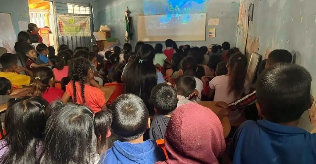 El grupo de jóvenes acudió a Chautipan a llevar un poco de alegría y convirtieron las deterioradas aulas de la escuela en una sala de cine en la que proyectaron películas, mientras los niños recibieron algunos dulces y les organizaron juegos para distraerlos por un rato.
