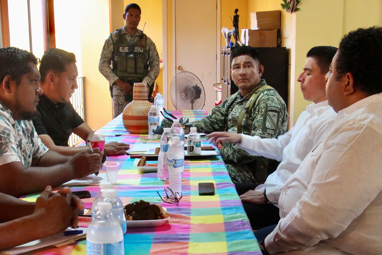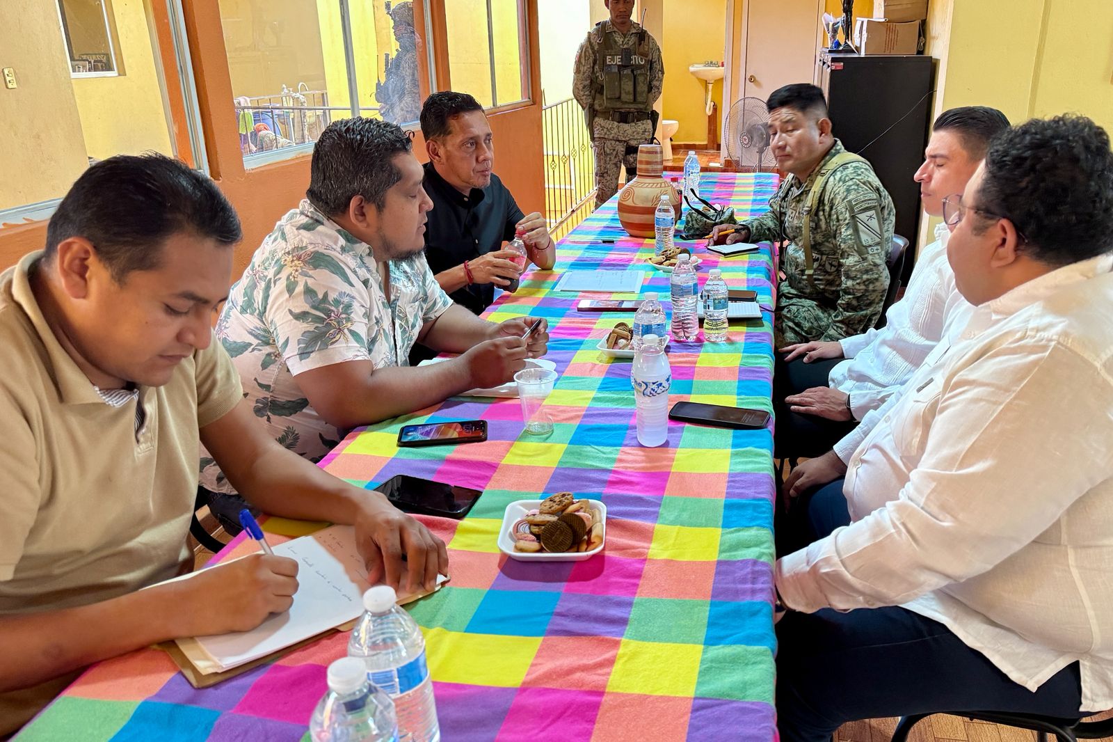 Durante el encuentro, en el que participó el comandante del 50/o Batallón de Infantería de la 35 Zona Militar, coronel, Juan Sotero García, se revisaron avances de obras sociales y de infraestructura urbana, como parte de las acciones integrales que impulsa la administración estatal para fortalecer la paz y la seguridad en la región.
