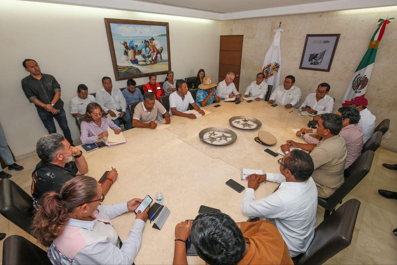 La reunión, encabezada por el Subsecretario de Desarrollo Político, Francisco Rodríguez Cisneros, contó con la participación del Secretario de Turismo del Estado, Simón Quiñonez Orozco, el Director de CAPASEG, Facundo Gastélum Félix, y el Secretario de Medio Ambiente y Recursos Naturales, Ángel Almazán Juárez.