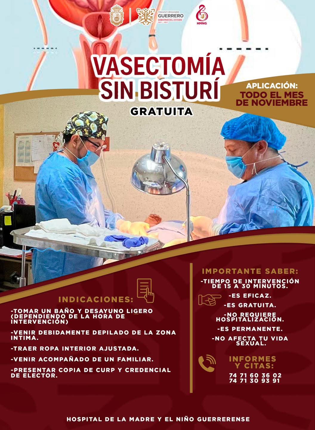 El Hospital de la Madre y el Niño Guerrerense impulsa durante noviembre su campaña de vasectomías sin bisturí, dirigida a hombres con paternidad satisfecha. La intervención forma parte del programa de Planificación Familiar y busca fomentar la responsabilidad compartida en la salud sexual y reproductiva.