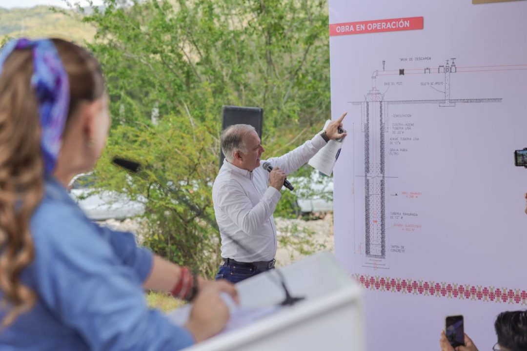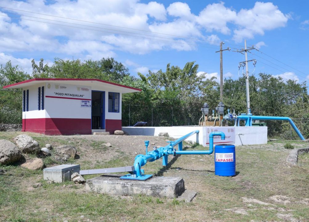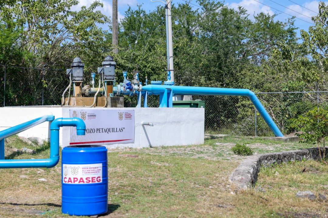 El Pozo Profundo de Petaquillas, rehabilitado con recursos estatales, tiene una profundidad de 600 metros y una capacidad de operación las 24 horas del día, los 365 días del año, lo que garantiza un suministro para más de 30 mil habitantes sin riesgo de agotamiento del recurso.