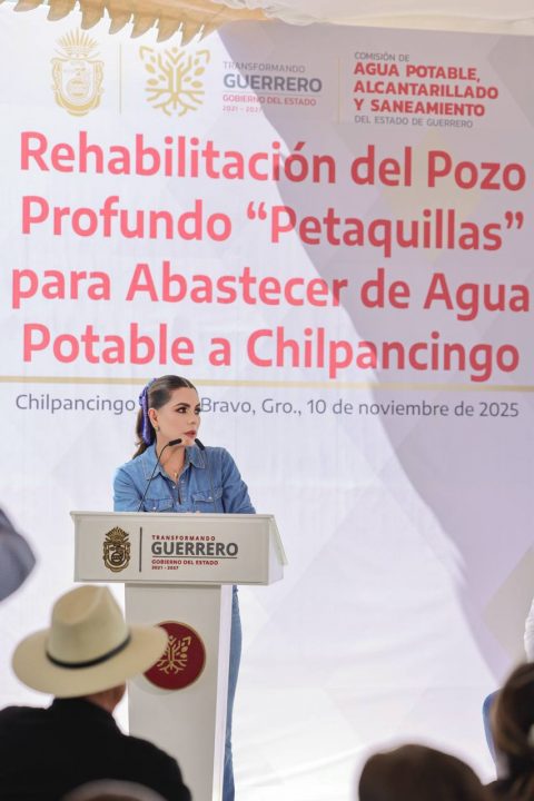 Chilpancingo, Gro., 10 de noviembre de 2025.- Para garantizar el acceso al agua potable de manera permanente a la población, la gobernadora Evelyn Salgado Pineda inauguró la rehabilitación del Pozo Profundo “Petaquillas”, obra en la que se invirtieron más de 3 millones de pesos y que beneficiará a más de 30 mil habitantes de esta comunidad, equivalente al 10 por ciento de la población total de Chilpancingo.