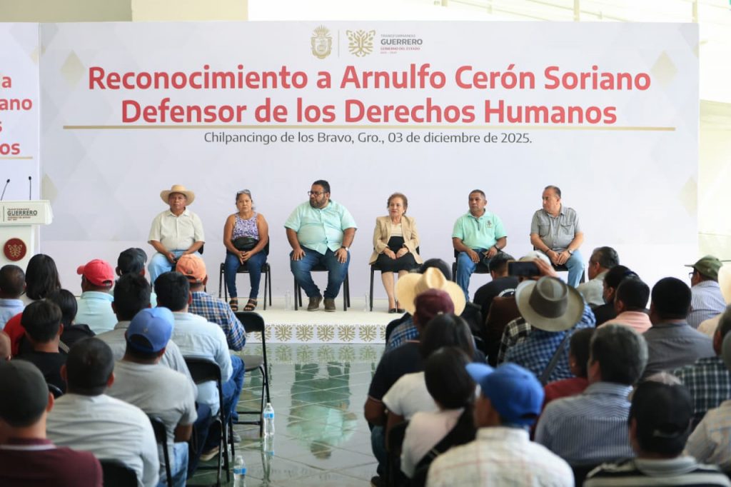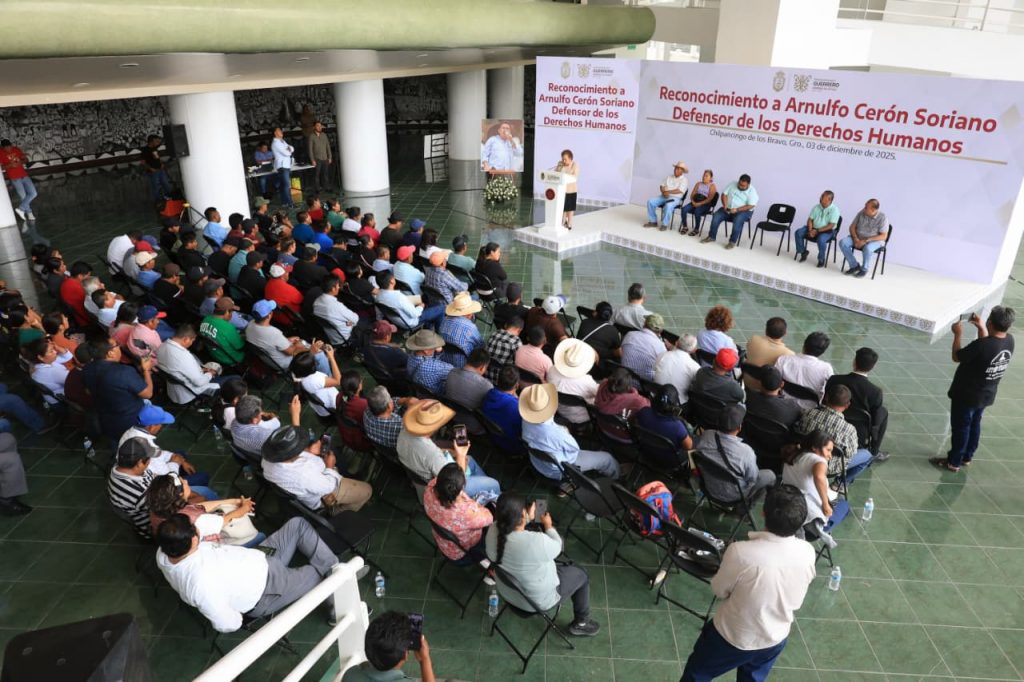 Chilpancingo, Gro., 3 de diciembre de 2025.- El gobierno de Guerrero, que encabeza la gobernadora Evelyn Salgado Pineda, llevó a cabo el acto de reconocimiento al luchador social y defensor de derechos humanos, Arnulfo Cerón Soriano, cuya vida y causa continúan siendo un referente de dignidad y justicia para la región de la Montaña.