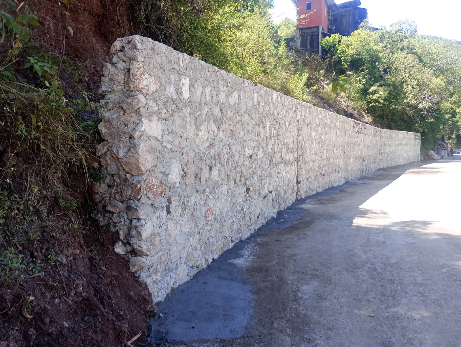 Asimismo, se construye un muro que permitirá reforzar la seguridad vial, previniendo riesgos derivados de los deslizamientos de material ocasionados por las lluvias y protegiendo a las viviendas cercanas y a los transeúntes.