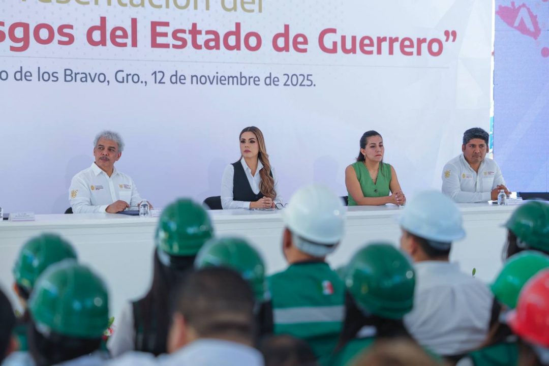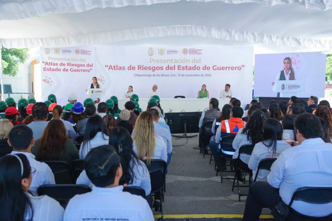Chilpancingo, Gro., 12 de noviembre de 2025.- La gobernadora Evelyn Salgado Pineda presentó el Atlas Estatal de Riesgos y el Sistema de Alerta Temprana Meteorológica, herramientas desarrolladas con tecnología de vanguardia y rigor científico que posicionan al estado como un referente nacional en gestión de riesgos.