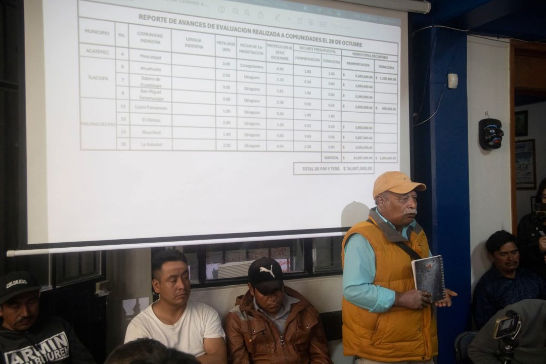“En la comunidad de Mezcalapa, municipio de Acatepec, se llevó a cabo una asamblea comunitaria de 18 comunidades, junto con representantes de la SICT y el INPI, donde se realizó una evaluación del programa de caminos artesanales. Sin embargo, nos hemos visto sorprendidos por los recortes presupuestarios anunciados. Esta situación es inaceptable, ya que atenta contra nuestros derechos y la capacidad de las comunidades indígenas que representamos”, leyó Evencio Iturvide.