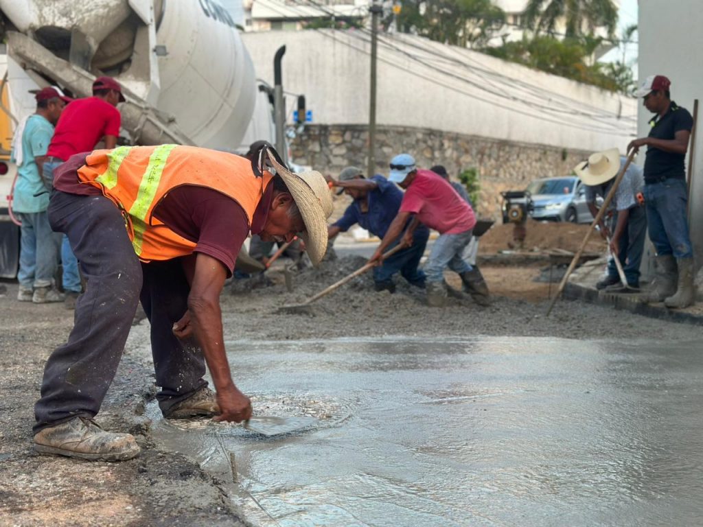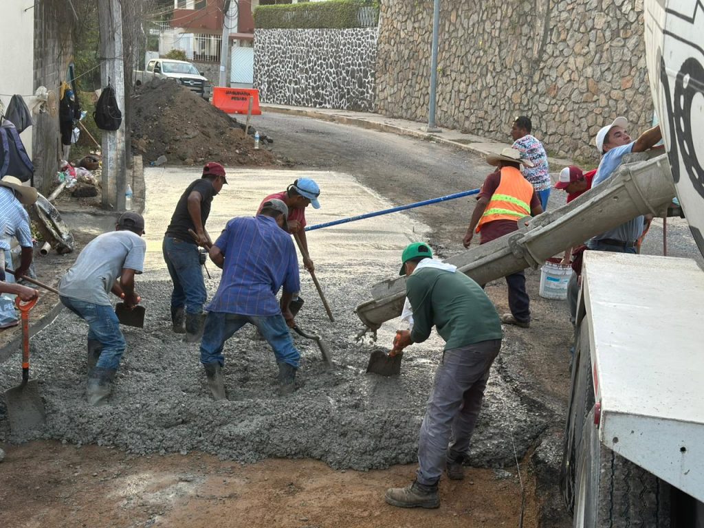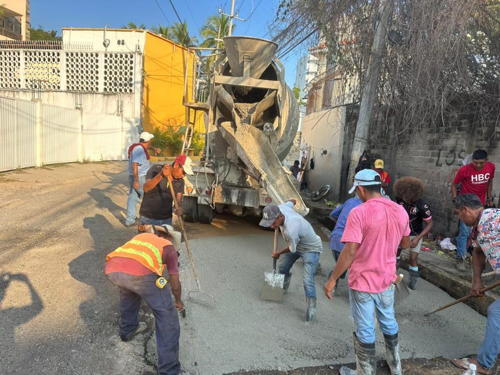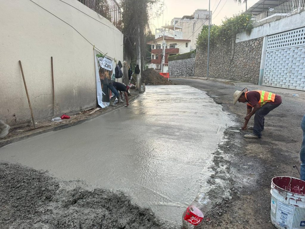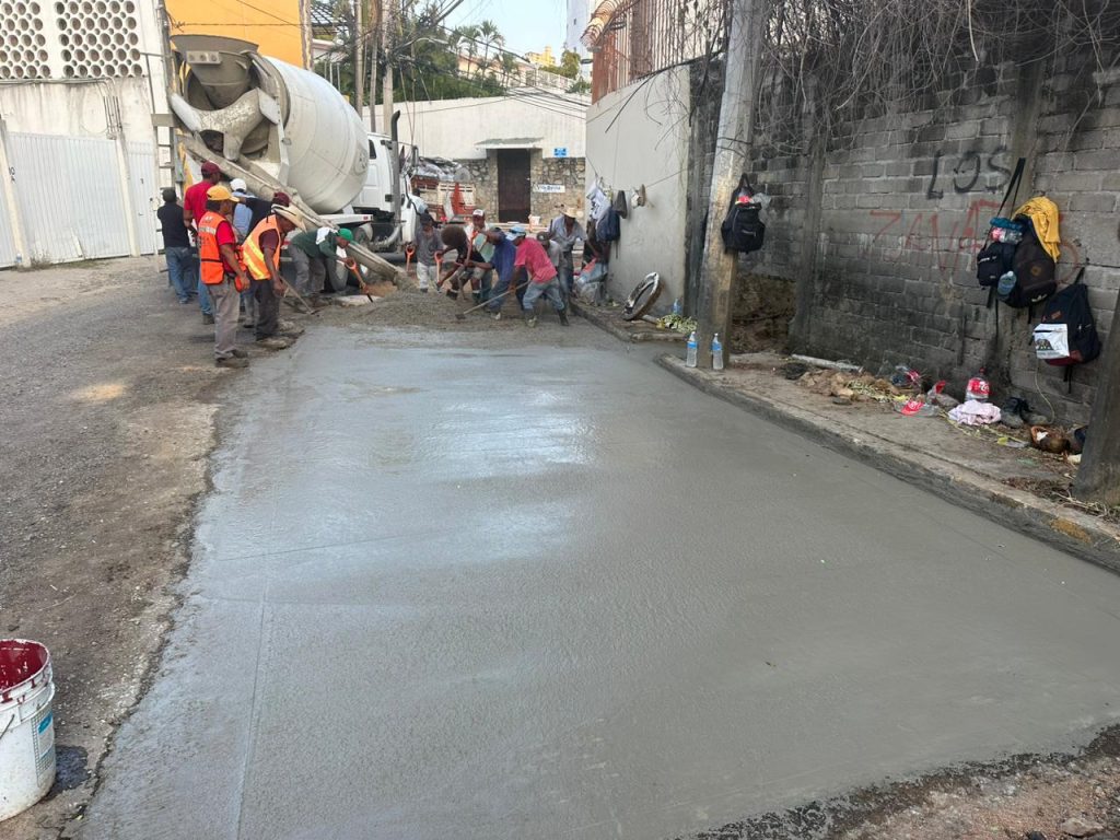 Por instrucciones de la presidenta Abelina López Rodríguez, la Dirección de Maquinaria Pesada y Parque Vehicular continúa su programa permanente de rehabilitación de calles mediante la aplicación de concreto hidráulico, lo que garantiza mayor durabilidad y resistencia en la infraestructura urbana.