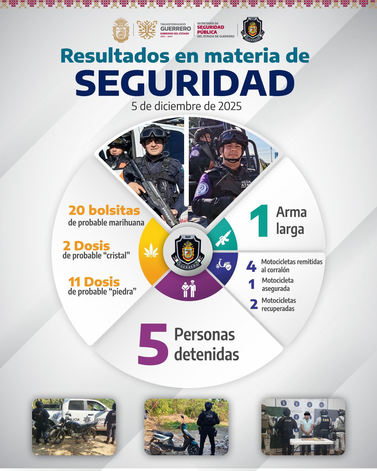 La presencia permanente, los patrullajes y el trabajo coordinado siguen generando resultados que fortalecen la tranquilidad de las familias guerrerenses.