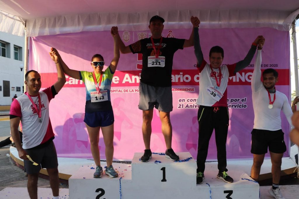 Chilpancingo, Gro.,14 de diciembre de 2025.- En un ambiente de entusiasmo, convivencia y promoción de la salud, el Hospital de la Madre y el Niño Guerrerense (HMNG), celebró con éxito la 4ª Carrera Familiar, realizada en el marco del 21 aniversario de esta institución, evento que reunió a más de 500 participantes entre familias, atletas y personal del hospital.