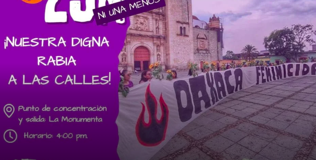Consorcio Oaxaca ¡Ni una más! Marcha 25 N (Transincluyente). La convocatorio es a todas las mujeres diversas, colectivas, organizaciones, defensoras y activistas a tomar la calles poque el gobierno de Salomón Jara sigue sin llegar a las mujeres, las niñas, y personas trans que todos los días están en riesgo quedando evidenciada la incapacidad e indiferencia ante los feminicidios, desapariciones y agresiones. La cita es a las 4 de la tarde en la Monumenta en la Ciudad de Oaxaca.