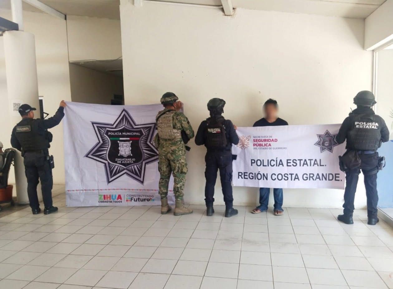 Elementos de la Armada de México detuvieron a dos presuntos infractores de la ley en distintos hechos registrados en el municipio de Zihuatanejo, donde además aseguraron un vehículo, un arma de fuego y presunta droga.