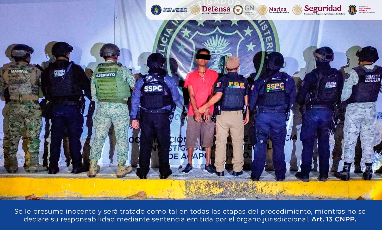 Chilpancingo, Gro., a 23 de noviembre de 2025. – La Fiscalía General del Estado de Guerrero informa que, en coordinación con la Secretaría de la Defensa Nacional (DEFENSA), Guardia Nacional (GN), Secretaría de Marina (SEMAR), Secretaría de Seguridad y Protección Ciudadana (SSPC) y la Secretaría de Seguridad Pública del Estado (SSPGro), cumplimentó una orden de aprehensión en contra de Gustavo “N”, por su probable responsabilidad en el delito de lesiones calificadas, en agravio de Juan “N”, en el municipio de Acapulco de Juárez, Guerrero.