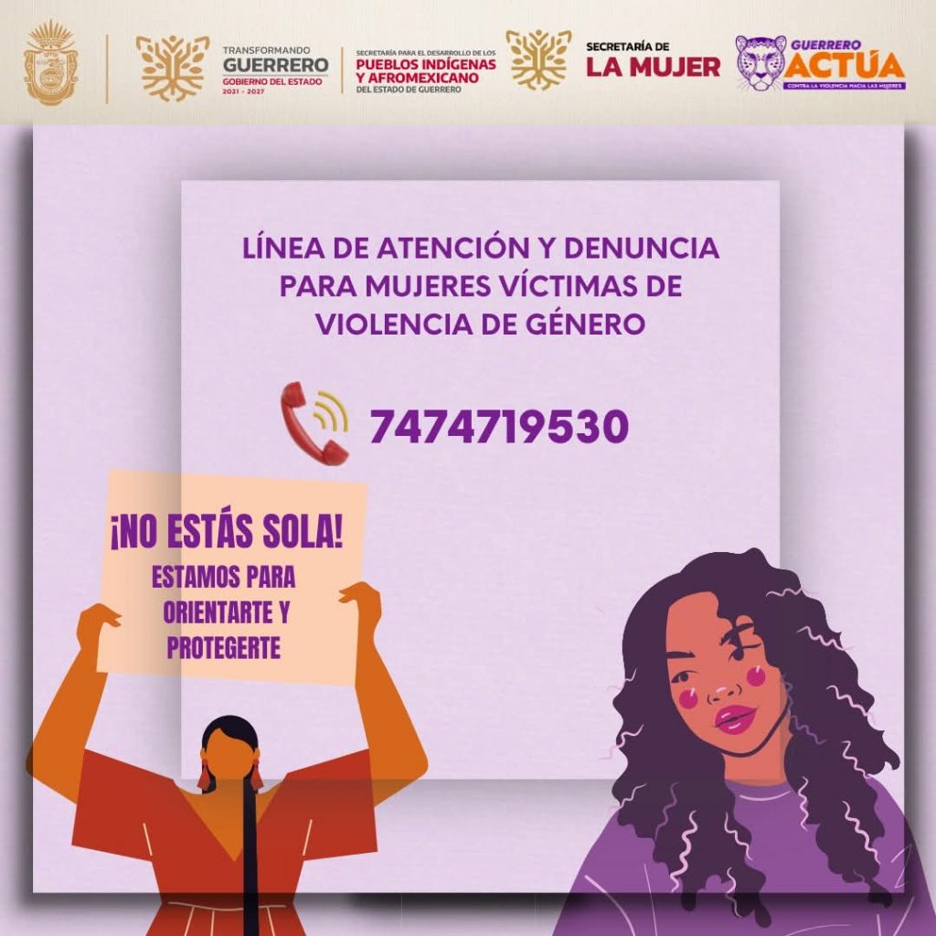 Por instrucción de la gobernadora Evelyn Salgado Pineda, el gobierno del estado a través de la Secretaría de la Mujer puso a disposición la línea de atención de la Procuraduría de la Defensa de los Derechos de la Mujer, dirigida a mujeres que enfrentan situaciones de violencia de género.