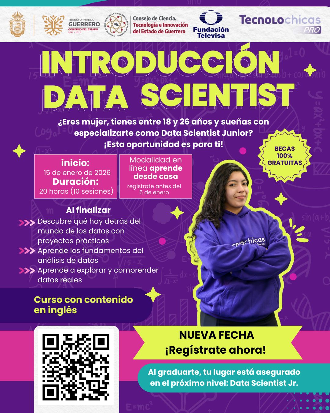 Con el objetivo de fortalecer las capacidades digitales de las juventudes guerrerenses, el gobierno del estado, a través del Consejo de Ciencia, Tecnología e Innovación del Estado de Guerrero, y por instrucción de la gobernadora Evelyn Salgado Pineda, lanzó la convocatoria para formar parte del curso Introducción a Data Scientist.