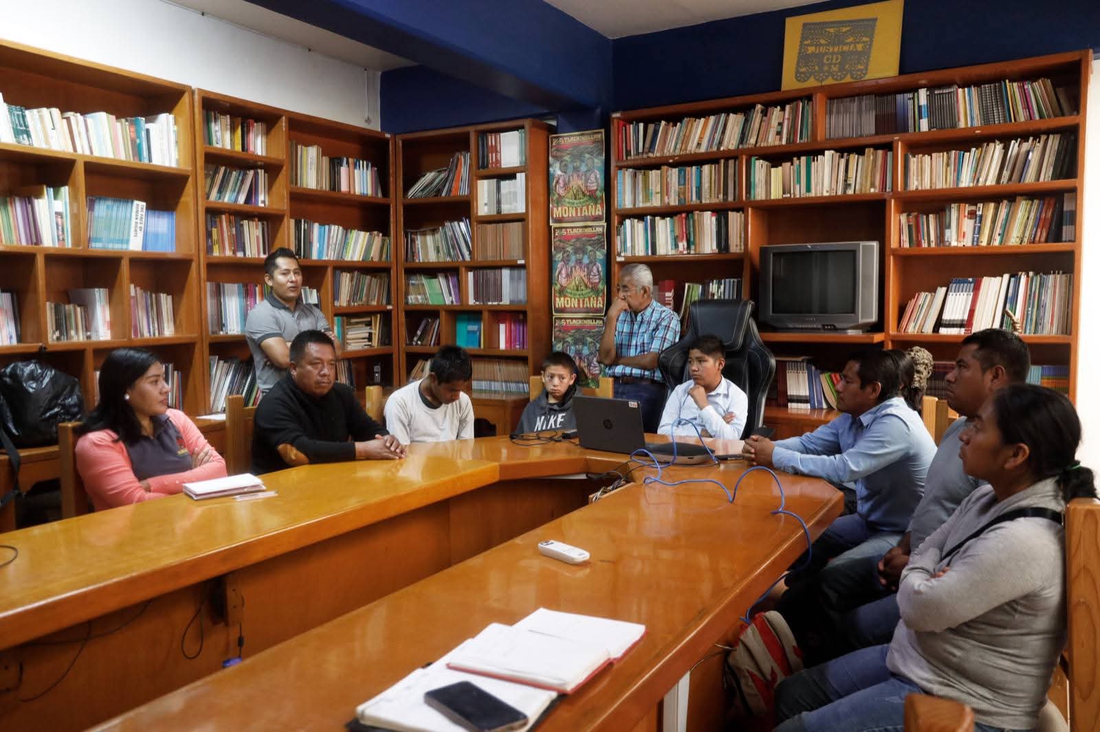 Entraron a la biblioteca “José Mojica” de Tlachinollan para enlazarse por video llamada con el actuario para que diera lectura a la sentencia de un amparo ganado que interpusieron los padres de familia, particularmente el comité, integrado por Paulino Vázquez, Ramiro Aguilar e Irma Tito. Es muy importante porque la sentencia de formato de lectura fácil es en lengua tu’un savi y su traducción en español.