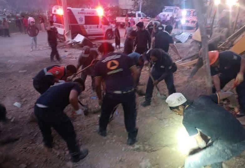 Al sitio arribaron las unidades Protección Civil, con el apoyo de tres máquinas retroexcavadoras, el personal operativo realizó maniobras de remoción de escombros hasta localizar a las víctimas.