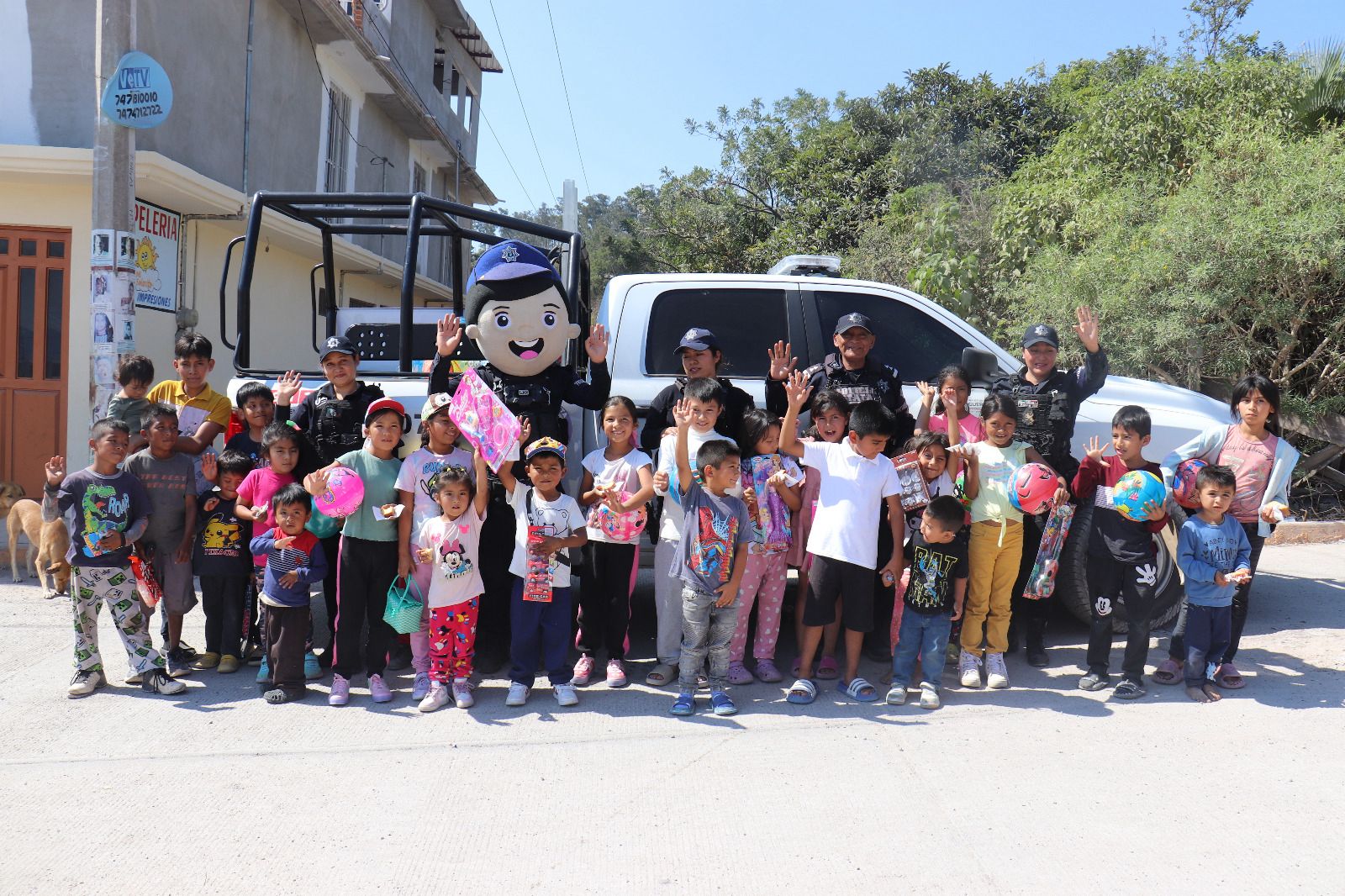 Chilpancingo, Gro. 6 de enero del 2026. La Secretaría de Seguridad Pública del Estado a través de la Unidad de Proximidad Policial, realizó actividades de convivencia y entrega de juguetes y rosca de reyes en diversas colonias de la capital, llevando momentos de alegría y cercanía a niñas, niños y familias.