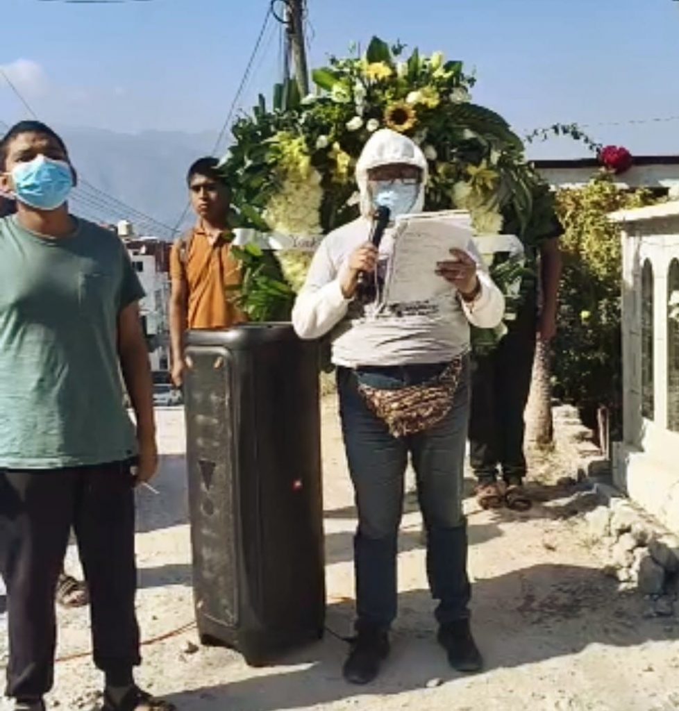 En el lugar donde fuera privado de la vida, en el crucero de la Colonia Cuitláhuac los normalistas de la Escuela Normal Rural “Raúl Isidro Burgos” de Ayotzinapa colocaron una ofrenda floral.