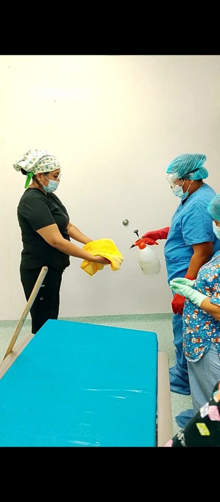 Informó que como parte de las labores de limpieza y desinfección de las instalaciones se realizó la limpieza exhaustiva de 4 quirófanos, área de recuperación quirúrgica, limpieza y desinfección de 9 consultorios, 3 gabinetes de estudios especiales de apoyo diagnóstico, la central de equipos y esterilización, así como la sala de espera