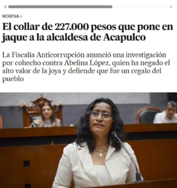 El País titula su nota de la siguiente manera: El collar de 227.000 pesos que pone en jaque a la alcaldesa de Acapulco.