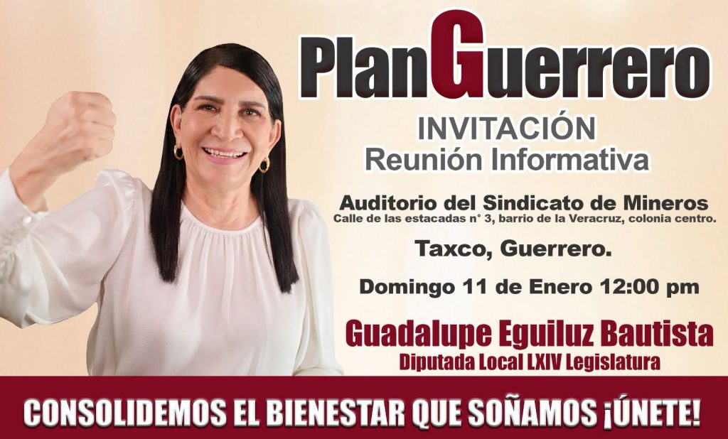 Taxco de Alarcón, Guerrero., Enero 11-2026.- La Diputada Guadalupe Eguiluz Bautista, presentó en esta ciudad platera el “Plan Guerrero” que dijo, “busca la cohesión social y el desarrollo”.