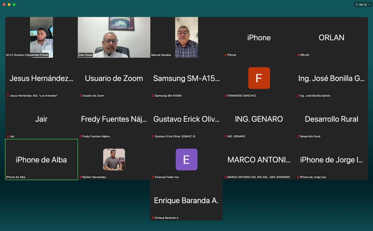 Chilpancingo, Gro., 12 de enero de 2026.- Para reforzar la coordinación interinstitucional en materia sanitaria pecuaria, el director general de Estructura Regional de la Secretaría de Agricultura, Ganadería, Pesca y Desarrollo Rural (SAGADEGRO), Edel Ojeda Bustamante, encabezó una reunión virtual con directoras y directores de Desarrollo Rural de diversos municipios del estado.