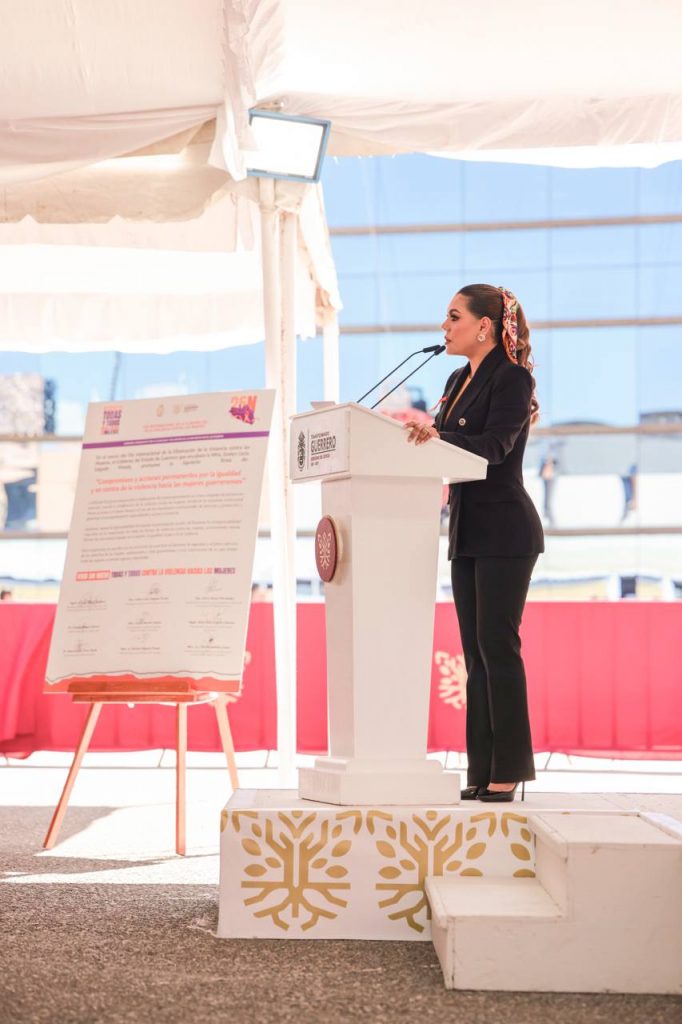 Chilpancingo, Gro., 24 de noviembre de 2025.– “En Guerrero no aceptamos ninguna forma de violencia contra las niñas, las adolescentes y contra las mujeres”, afirmó de manera enérgica la gobernadora Evelyn Salgado Pineda al poner en marcha la jornada de 16 días de activismo en Guerrero, para encaminar los trabajos de protección y justicia con el objetivo de visibilizar a las mujeres, así como erradicar y sancionar cualquier tipo de violencia de género.
