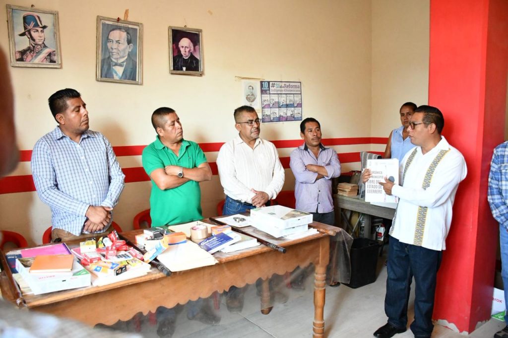Por su parte, el Mtro. Abel Bruno Arriaga, titular de la SEDEPIA, manifestó que desempeñar el cargo de comisario municipal representa un alto honor y conlleva una gran responsabilidad, en virtud de que las autoridades comunitarias velan por el bienestar y desarrollo de su pueblo. “Sostener el bastón de mando simboliza respeto, compromiso y amor al pueblo”, dijo el funcionario estatal. Finalmente, entregó material de papelería y un ejemplar de la Ley Orgánica del Municipio Libre del estado de Guerrero a los integrantes de la Comisaría Municipal.