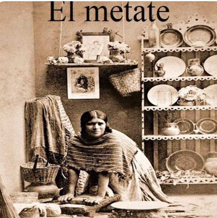 El metate es un utensilio de cocina prehispánico de origen náhuatl que consiste en una plancha de piedra rectangular para moler ingredientes como maíz, chiles y especias, usando un rodillo de piedra llamado metlapil.