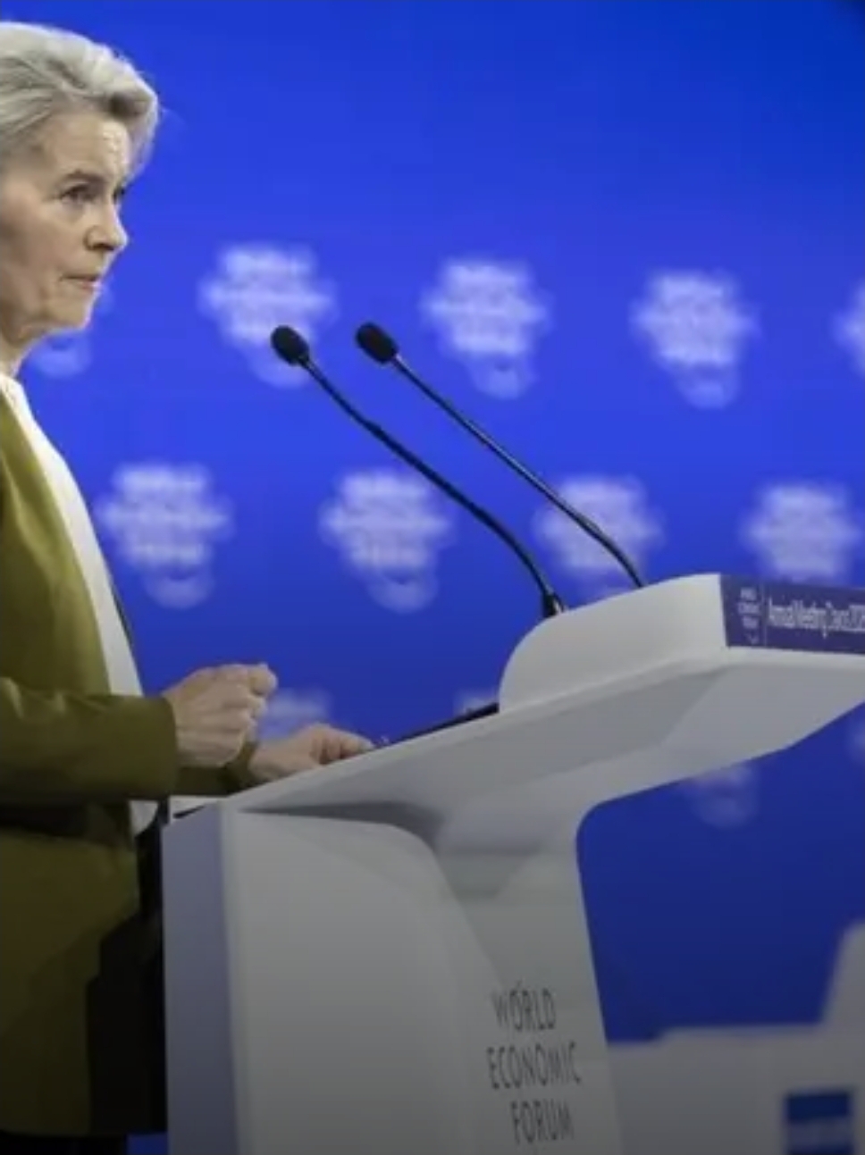 Ursula von der Leyen, presidenta de la Comisión Europea, interviene en la 56ª edición del Foro Económico Mundial (FEM) en Suiza. EFE/EPA/GIAN EHRENZELLER