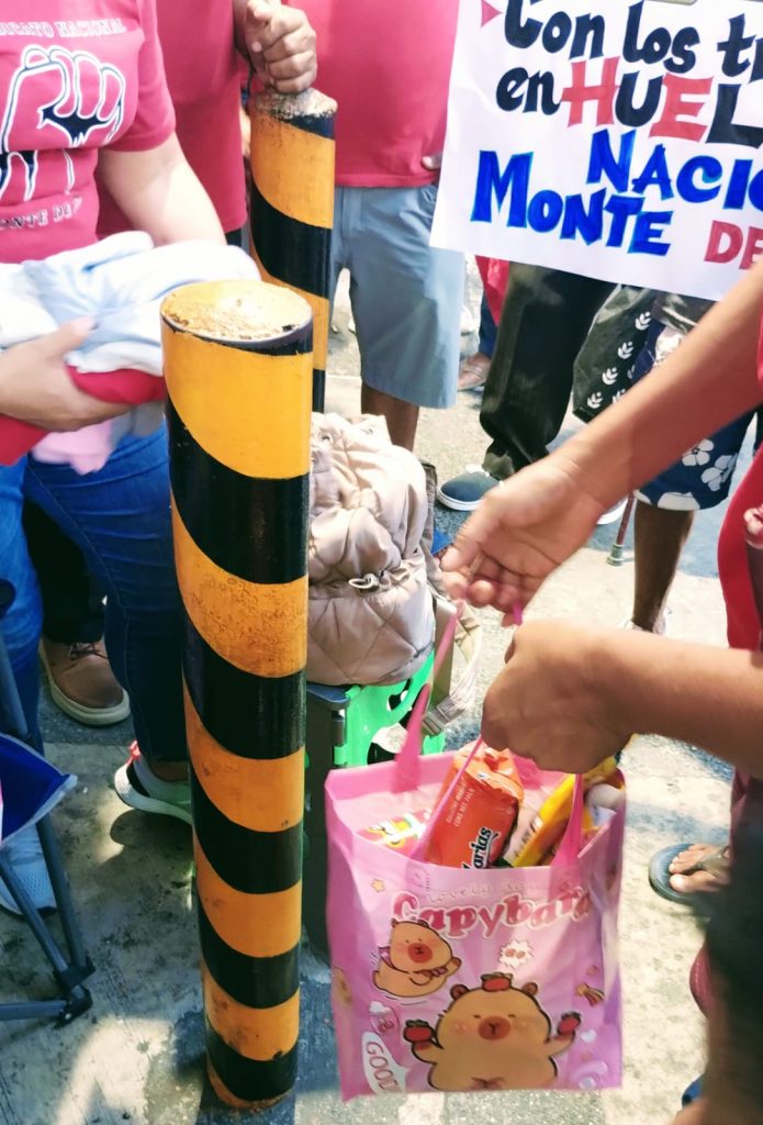 Ante los trabajadores huelguistas a quienes les donaron alimentos y recursos económicos, exhortó a resistir hasta vencer, “la peor lucha es la que se abandona, se ve, se siente que ustedes son de una sola pieza”.