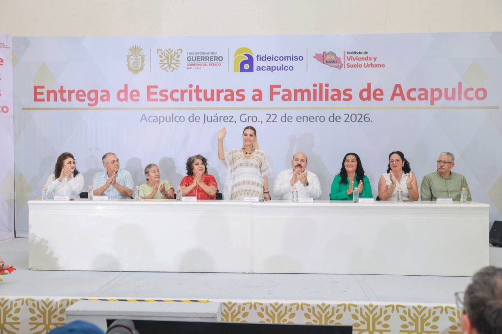 Acapulco, Gro., 22 de enero de 2026.- Para brindar certeza jurídica y protección al patrimonio de las familias acapulqueñas, la gobernadora Evelyn Salgado Pineda entregó 300 títulos de propiedad a habitantes de diversas colonias del puerto, garantizando así la certeza patrimonial, mediante la regularización de sus inmuebles. En el evento realizado en un hotel de la zona Dorada, la mandataria estatal señaló que se trata de un acto de justicia social, que busca mejorar y dignificar las condiciones de vida de la población.